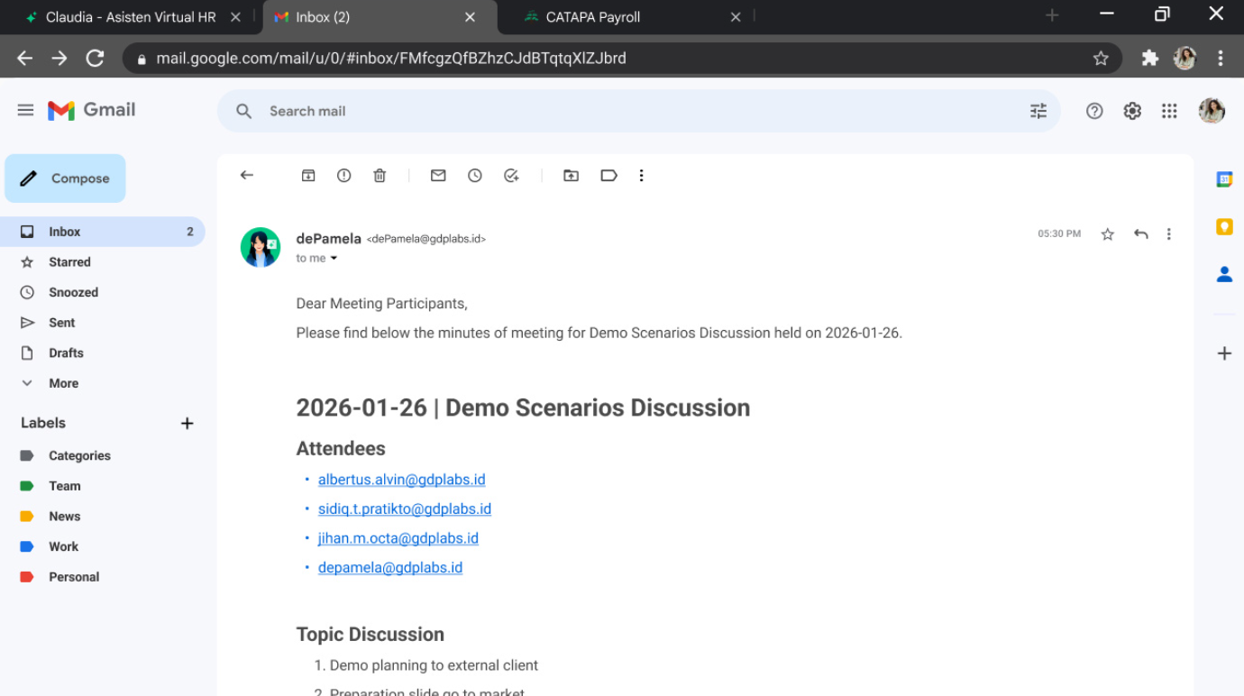 8. Pamela✨ distributes the MoM to all meeting attendees via email.