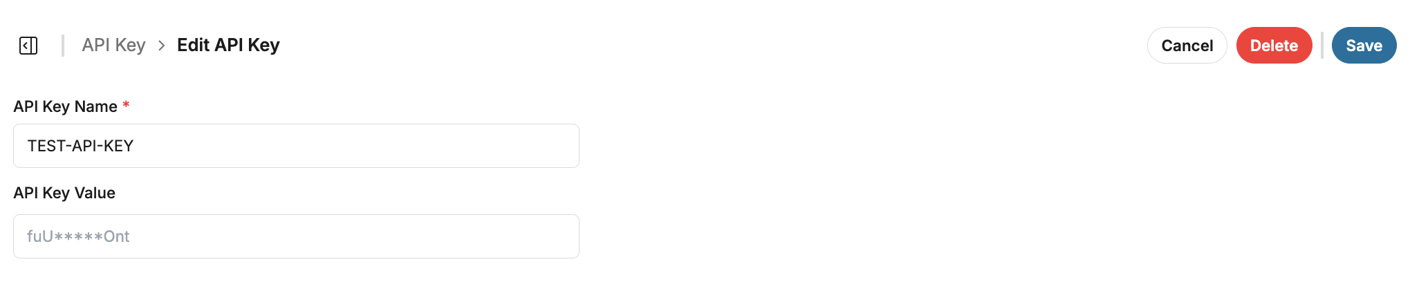 For security reasons, the API key value is partially masked and only the first 4 and last 4 characters are displayed.