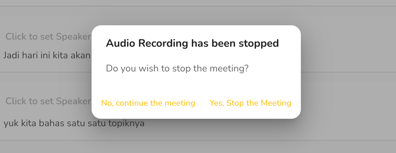 A confirmation modal will appear whether you want to stop Meemo. Once confirmed, you can click **Yes, Sure**.