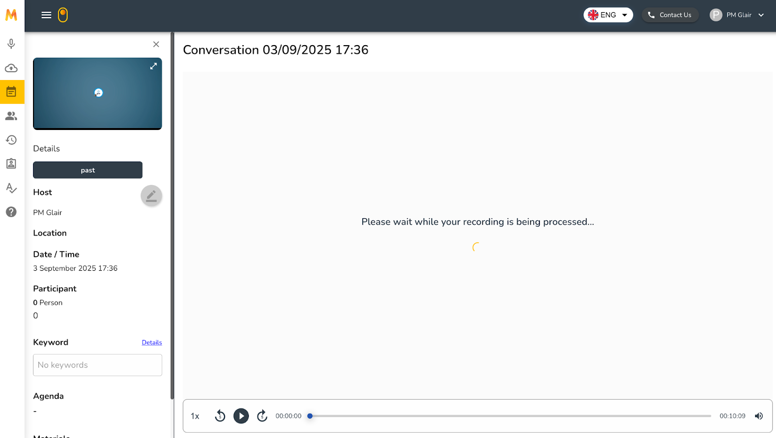 After the process is complete, you can [view the meeting results](https://gdplabs.gitbook.io/meemo/application-ui/view-meeting-result).