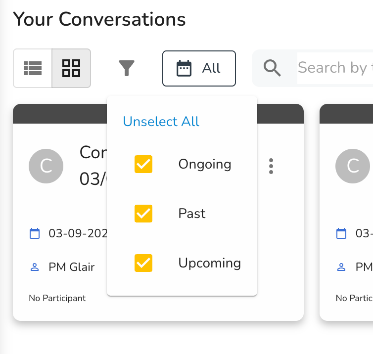 3. **Date Filter** – Use the calendar icon to filter meetings by specific dates.