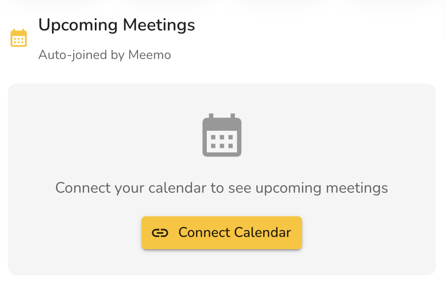 You can click Connect Calendar to go directly to the Calendar Integration setup. The full setup guide is available on the [Auto Join Mode](https://gdplabs.gitbook.io/meemo/application-ui/auto-join-mode) page.