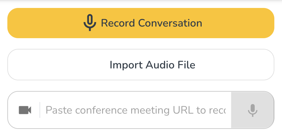 On the top-right side of the dashboard, you will also see the **Meeting Source selector**. This menu lets you choose how Meemo will capture your meeting, such as joining via meeting URL, importing an audio file, or recording directly.