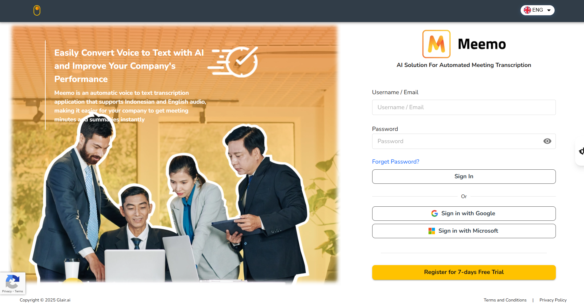 To access Meemo, you need to log in to your account. Logging in allows you to enter your organization’s workspace where you can record, manage, and review meetings.